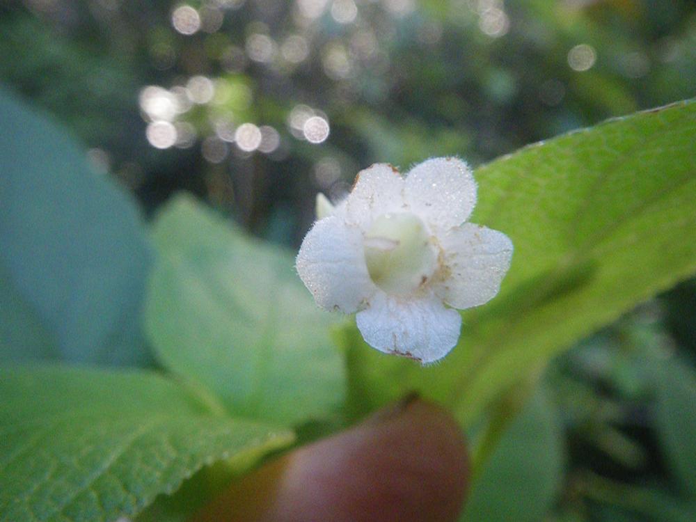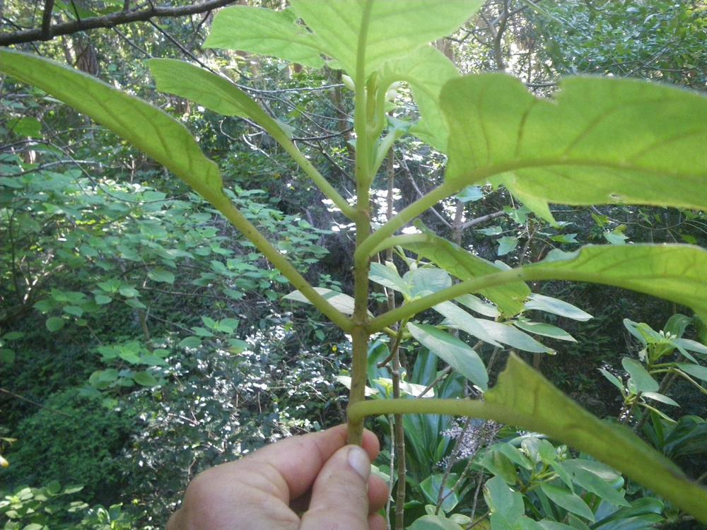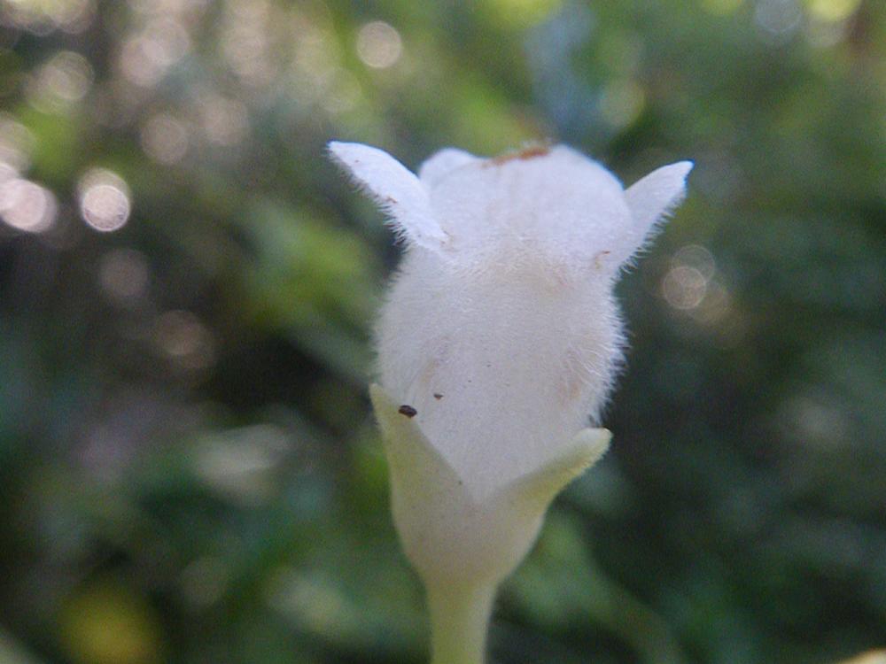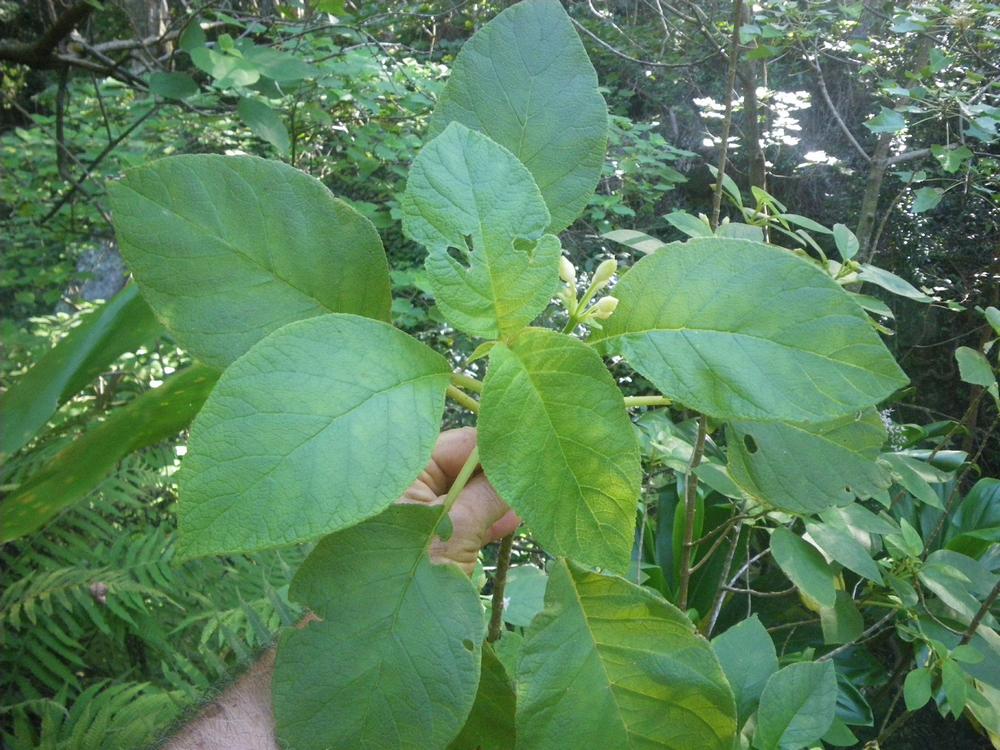Thanks to someone who knows his Hawaiian Plants this has been identified as "Ha`iwale" a Hawaiian native. According to the book "Growing Hawai`is Native Plants" by Kerin Lilleeng-Rosenberger there are about 53 species endemic to the islands that evolved from maybe 4-6 species that "Mother Nature" brought to the islands. The scientific genus is Cyrtandra, specie unknown.