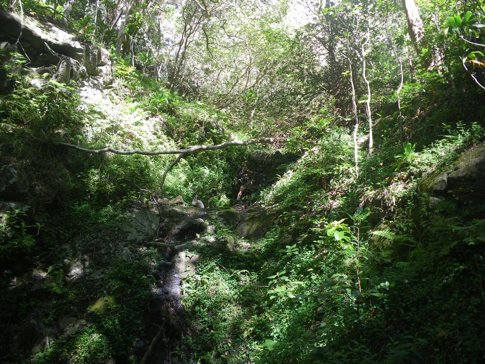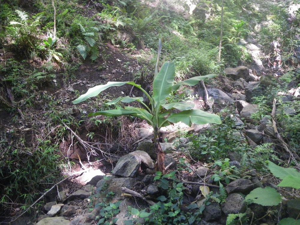 Above the banana was a small water fall, now dry, and Gene went up it. The rest contoured around it on the right. Click on the Hot Spot in the middle for a close up of Gene lost in the shadows.