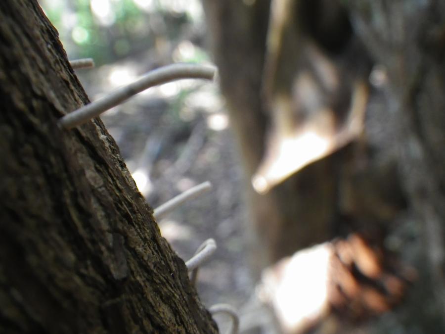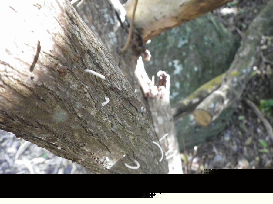 As I wandered up the trail I passed a dead tree w/dozens of little white "things" sticking out. I believe this is the waste product of some bug that is digging into the dead wood.