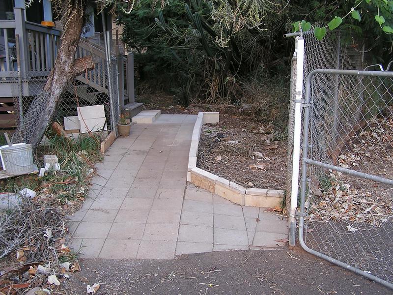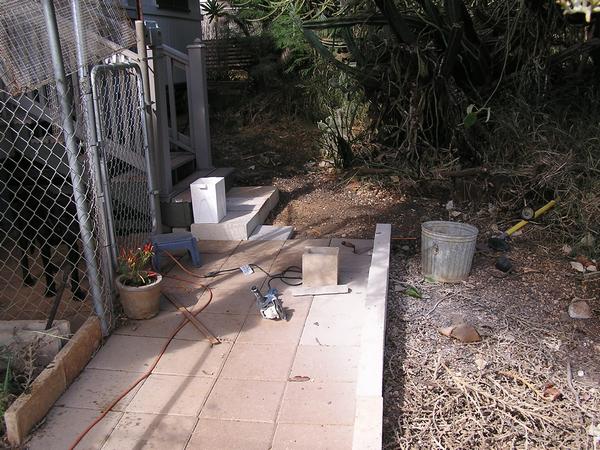 The side walk extension to the foot of the stairs is started.