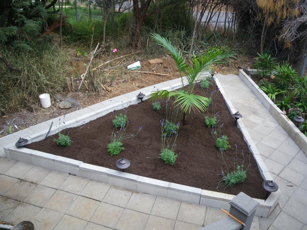 To keep the wife happy about "another palm" in the front I did some quick thinking and knowing how much she loves herbs.....I suggested we fill in around the palm w/lavender.