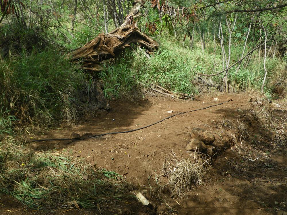 The last step was covering w/the same soil mix, adding a bit of water and then hooking up the drip line. The first two will get 1 gallon/hour twice a week, the deeper one 2 gallons/hour