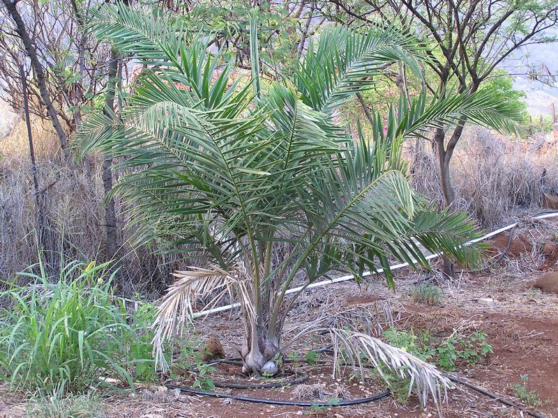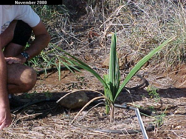 Syagrus coronata was also planted about 7 years ago. Here it is shortly after planting in 2000.