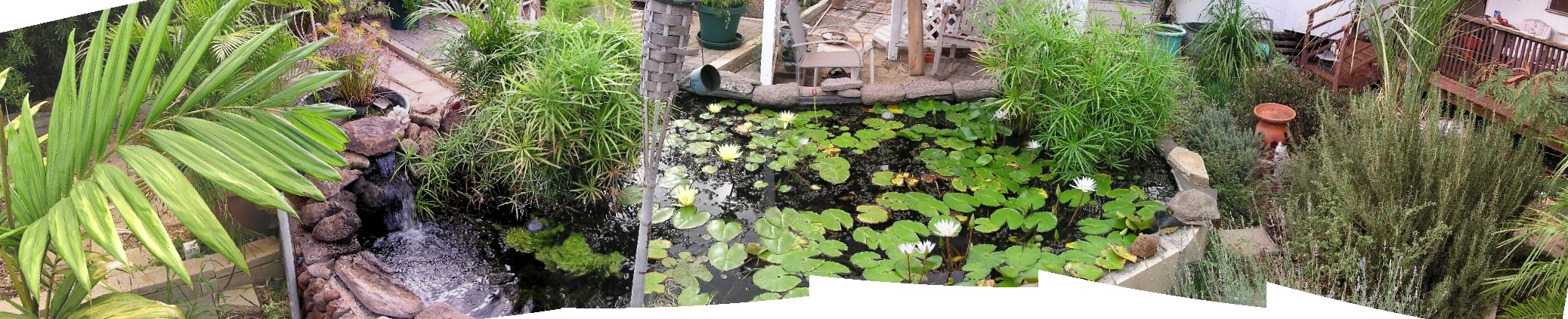 Besides the lilies, we have papyrus and oxygenating plants. There are fish, comets, black mollies, angels, and a few types of alge eaters. As a mater of fact all the fish live on what the pond produces. We do not feed the fish anything. The filter works so well it has not been cleaned in over a year. More info on the filter at a later date.