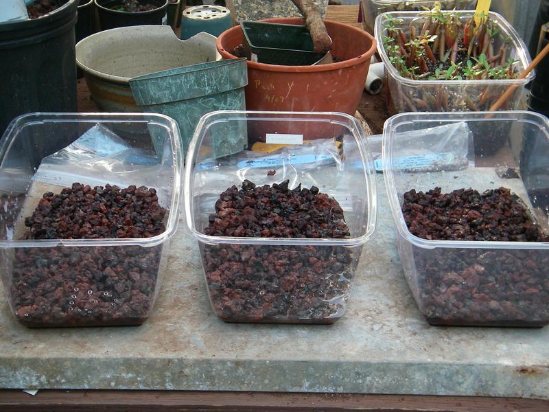 I then add water to just about cover the cinder. After that potting soil w/a little Sponge Rock added for good luck