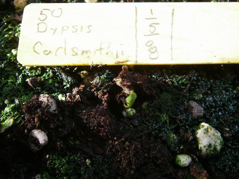 One month (February 9th, 2008) later I took a peak and I saw one little green knob trying to push it's way into daylight. Since then, today is the 15th about 3 more are pushing above the ground. I never expected to see anything this fast. The other two containers show nothing. Another thing I noticed is that I put to much water in the container when I began. I think it not needed to be equal to the height of the cinder.