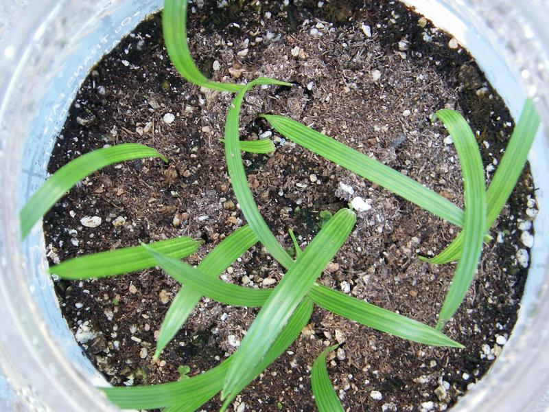 Here is a follow up on another experiment. I took 20 Phoenix roebelenii seeds and placed them in this plastic jar that once contained pretzels. I used the same method as on the past pages. Used about 2" of red cinder then put in water to the height of the cinder. This was then covered w/about 6" of potting soil with the seeds placed on top. Just enough soil was then used to cover the seeds. This was back in September of 2007. Of course I placed the cover on the jar to contain the moisture.