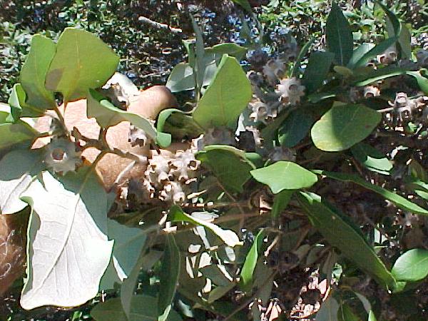Along the trail we found this tree with strange looking fruit. I think it might be a eucalyptus. The lower photo is a close up of the seed pods.